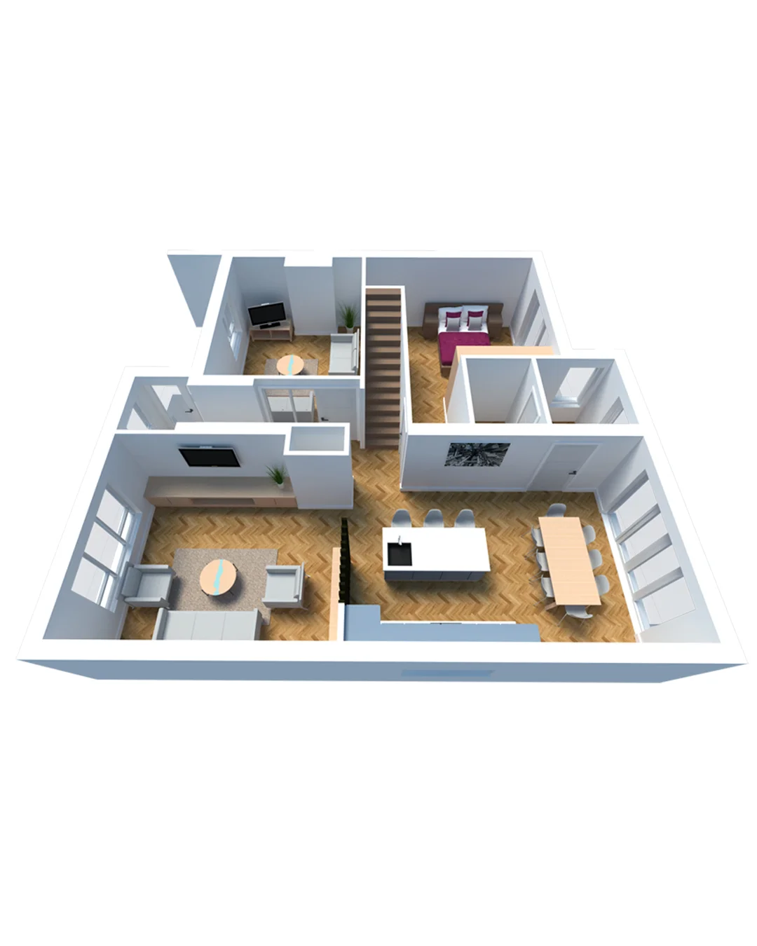 This is the final stage and the most rewarding, as this is when you will be truly able to visualise your homes potential. We shall produce professional 3D visuals consisting of one bird’s eye perspective and two internal views.